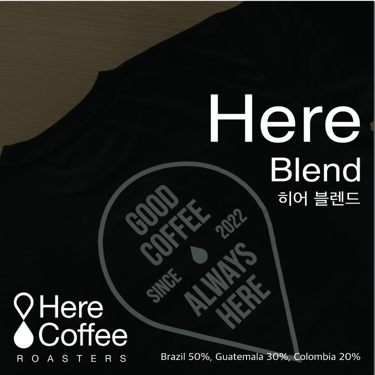 히어커피로스터스 히어 블렌드는 낮은산미, 구운토스트, 밀크초콜렛과 같은 편안한 늬앙스로 즐기실 수 있습니다.